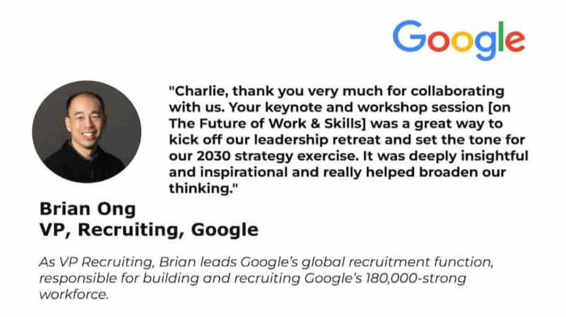 For over 15 years, he has been analyzing how emerging technologies and global trends are reshaping business, industries, and work.In 2013, he coined the AI-centric 4.0 model which pre-dated and is similar to what the World Economic Forum referred to as the Fourth Industrial Revolution in 2016.His expertise sits at the intersection of futures, leadership, workforce, transformation and technology, translating complex disruption into clear strategic implications for senior leaders.Charlie has spoken to leaders across global organizations including Google, Citibank, Verizon, GSK, SWIFT, and Micron.His perspectives have been featured by international media such as BBC, National Geographic, Financial Times, The Telegraph, Al Jazeera, and Channel NewsAsia.